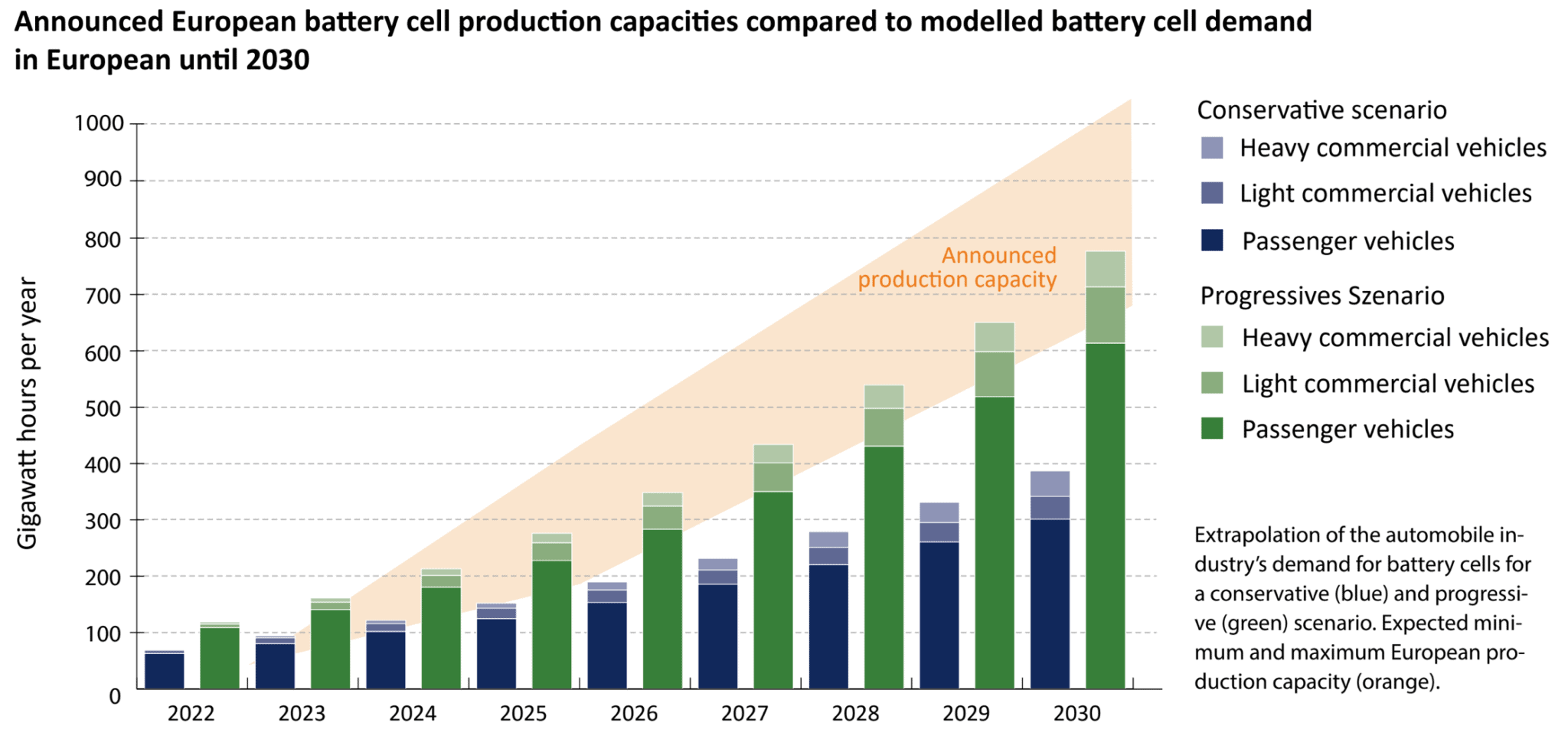 In recent years, manufacturers have also had bad experiences with dependence on global supply chains. Because of this, an increasing number of companies is adopting the “Local for local” production and sourcing strategy. This simplifies logistics and reduces the risk of production downtime or supply bottlenecks to an acceptable level. The establishment and expansion of a European battery ecosystem is worth more than 67 billion euros of investment to the industry by 2030. According to a research team from Münster/Westphalia University of Münster, at least 20 “gigafactories” are needed in Europe – a quarter of the global production capacity. It is planned that Germany will account for more than a third of European battery production.